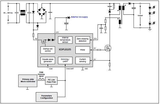 圖1.XDPL8105典型應用1(初級邊微控制器調光)