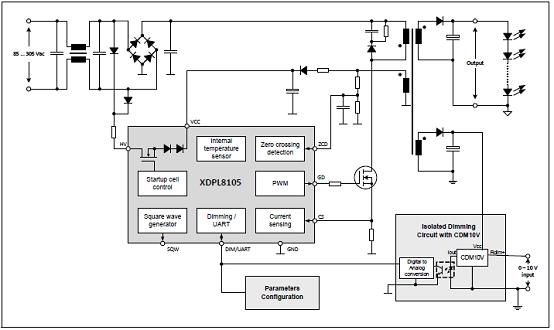 圖2.XDPL8105典型應用2(次級邊0-10V調光)
