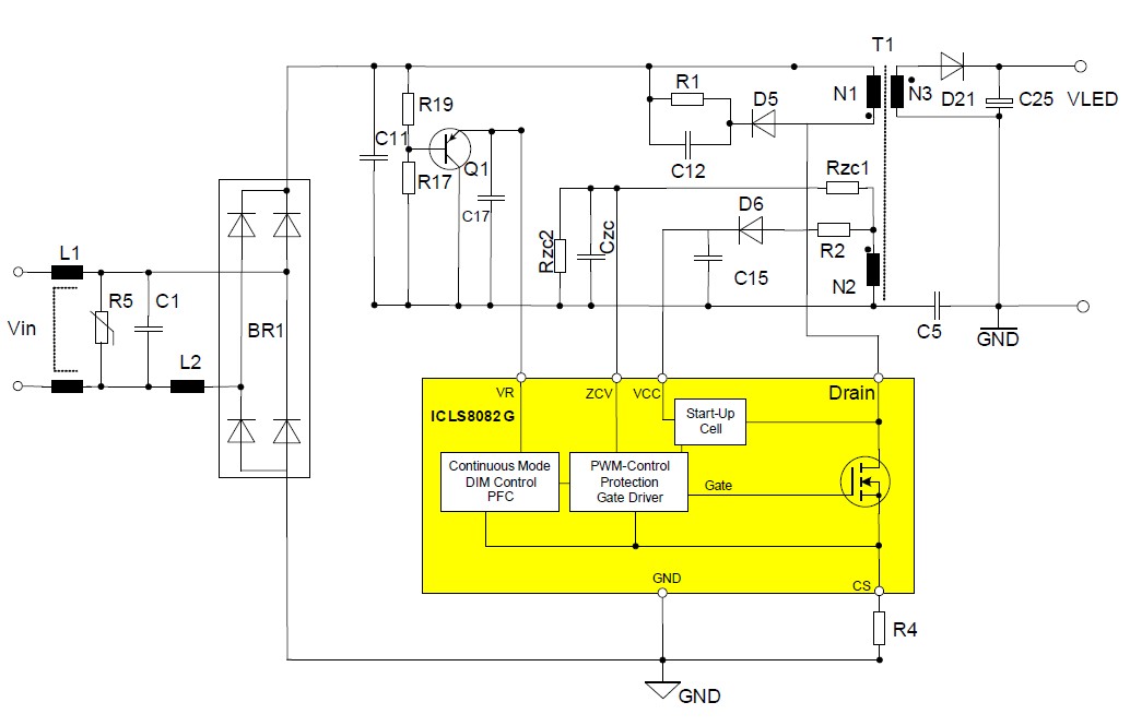 高能效LED驅(qū)動——調(diào)光解決方案 英飛凌推出的一種創(chuàng)新解決方案有助于克服這一挑戰(zhàn)。采用ICL8001G / ICLS8082G的高能效可調(diào)光LED驅(qū)動系統(tǒng),在集成度、性能、特性和總系統(tǒng)成本等方面,設立了行業(yè)新標桿。ICL8001G / ICLS8082G面向離線式家居LED照明應用——尤其是40W / 60W / 100W白熾燈泡替代產(chǎn)品,采用具備集成式功率因數(shù)控制功能的準諧振工作模式。創(chuàng)新主控技術不僅可以實現(xiàn)出類拔萃的系統(tǒng)能效,而且大幅減少了外部組件數(shù)量。采用該器件設計的緊湊型LED驅(qū)動裝置,可被輕松嵌入標準化螺口燈中。ICL8001G的性能優(yōu)于當前的相關規(guī)范的要求,還能滿足未來相關規(guī)范的要求。ICL8001G / ICLS8082G可與外置的 CoolMOS? 開關結合使用,非常易于擴展,為滿足您的LED燈泡設計要求提供了一個理想的選擇。配備集成式 CoolMOS? 開關的ICLS8082G采用PG-DSO12封裝。 應用 ·40W / 60W / 100W白熾燈泡代替品 ·替換燈具和LED燈管/燈具 系統(tǒng)亮點 ·稱雄業(yè)界的性能 ·同類最低的物料成本 ·高集成度 ·優(yōu)于當前相關規(guī)范的要求 能效 ·功率因數(shù)> 98% ·系統(tǒng)能效高達90%以上 系統(tǒng)成本/物料成本 ·ICL8001G / ICLS8082G簡化單面PCB設計 ·所需外部組件數(shù)量比市場上現(xiàn)有的競爭對手系統(tǒng)少一半,可讓物料成本降低30%左右 主要特性 ·單級功率因數(shù)校正、原邊控制和調(diào)光功能 ·隔離式驅(qū)動輸出,實現(xiàn)有效熱管理 ·切相調(diào)光,支持后切和前切可控硅調(diào)光器 ·最大限度減少外置組件數(shù)量,為設計尺寸最小、可靠性最高的LED驅(qū)動裝置創(chuàng)造了條件 ·出色的功率和光質(zhì) ·多重安全功能,在發(fā)生故障時全面保護系統(tǒng) ·ICL8001G / ICLS8082G為快速輕松設計尺寸最小的LED驅(qū)動單元創(chuàng)造了條件 ·可滿足未來更加嚴格的規(guī)范要求 應用電路